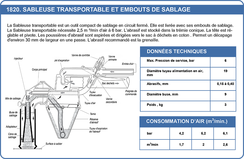 Sableuse transportable et embouts de sablage