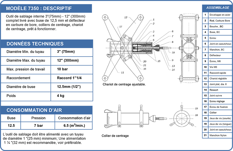 Sablage interne pour diam. 75 à 300 mm