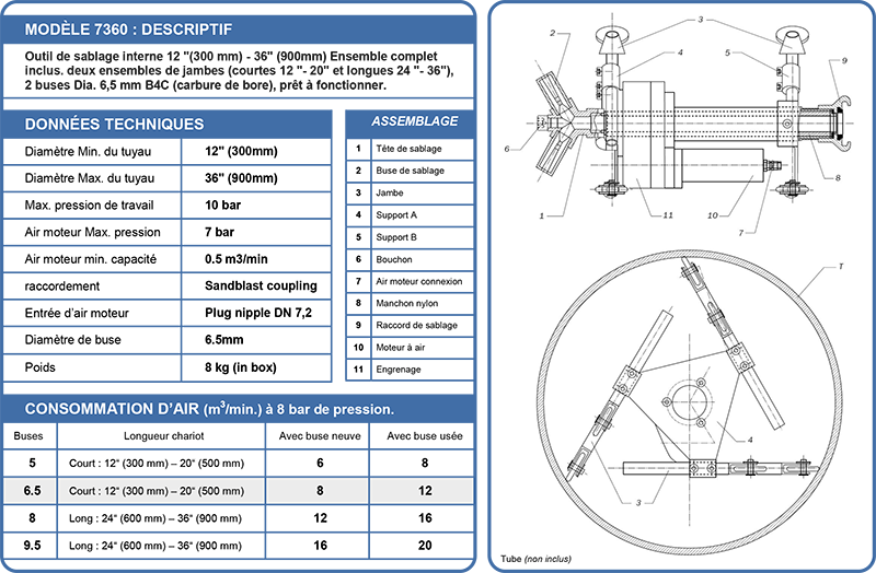 Sablage interne pour diam. 300 à 900 mm