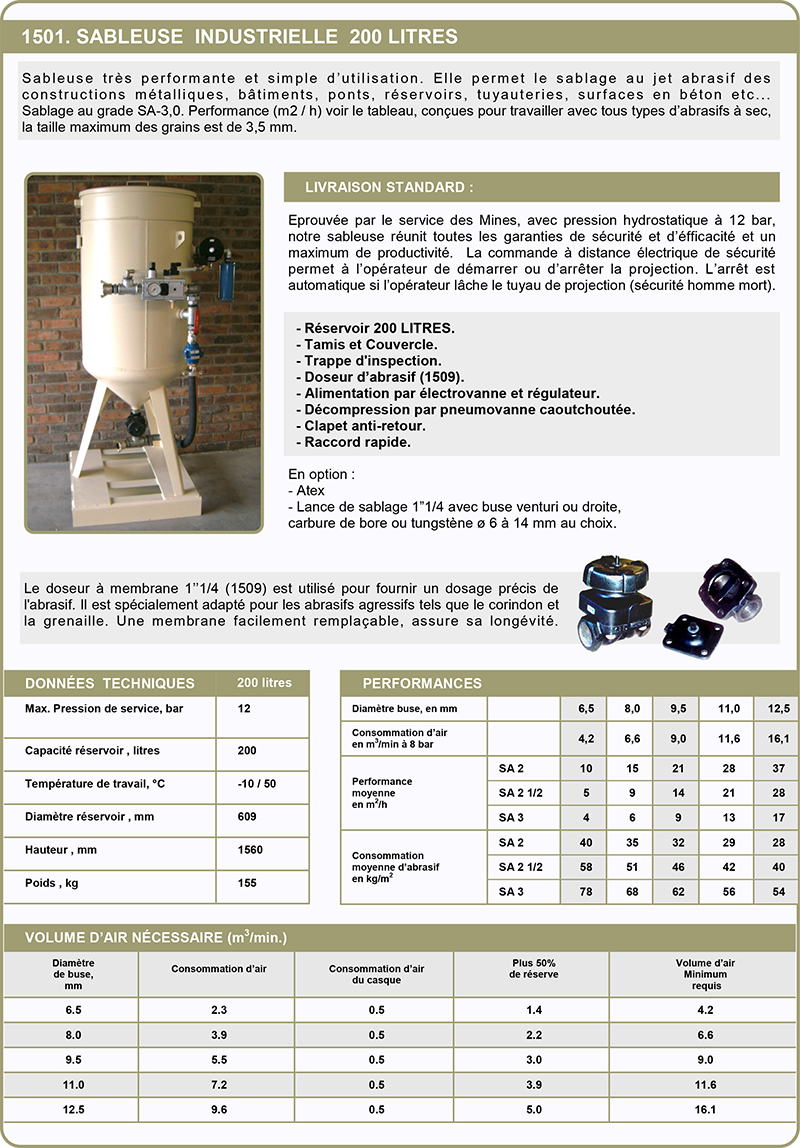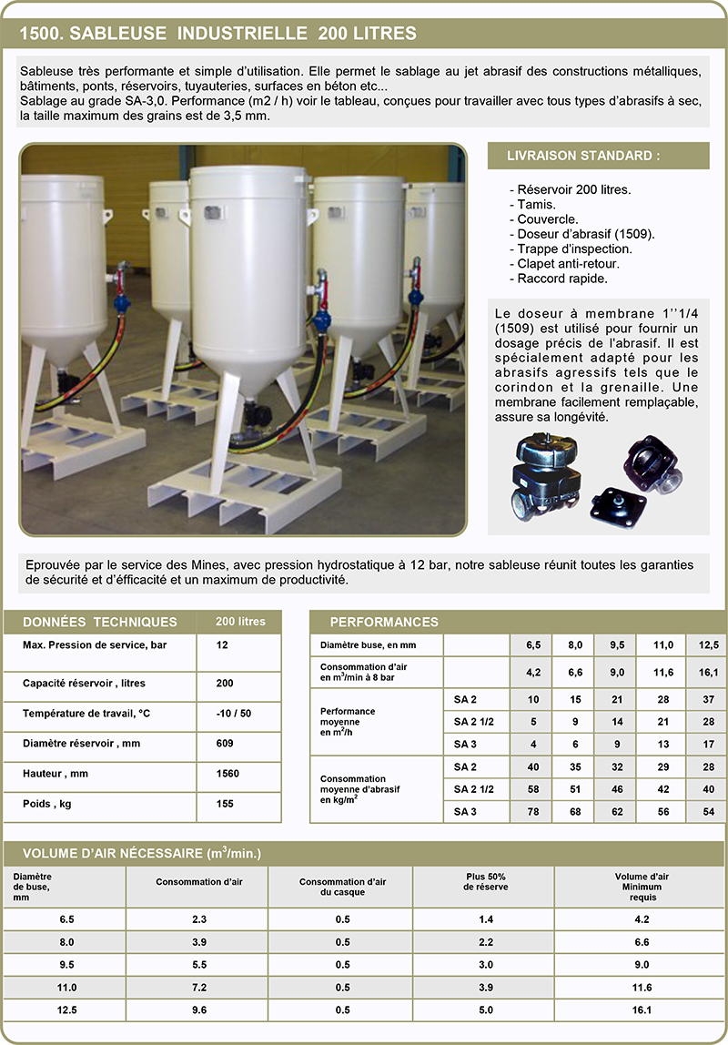 Sableuse indus. 200 litres ''Eferest'' avec Dosage à membrane (1509)