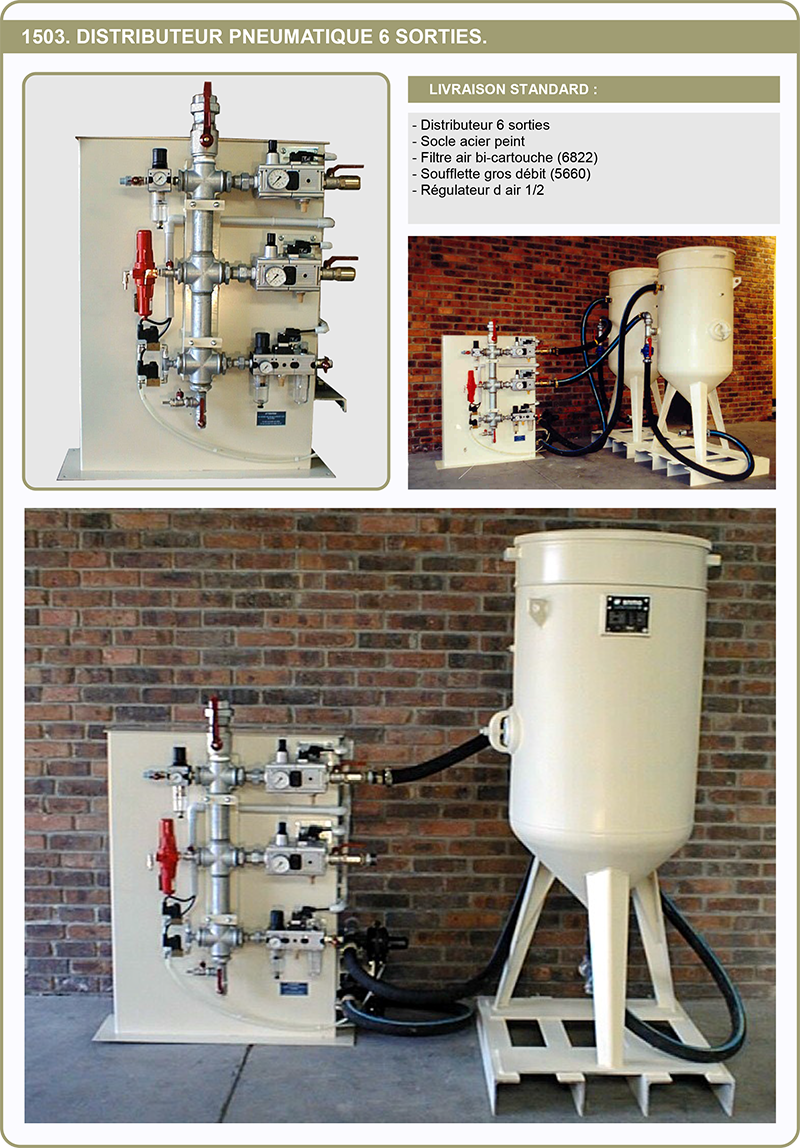 Distributeur pneumatique 6 sorties filtre air bi-cartouche (6822) + soufflette gros débit (5660) + régul.