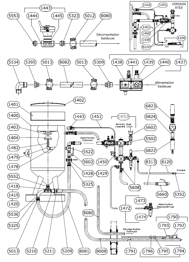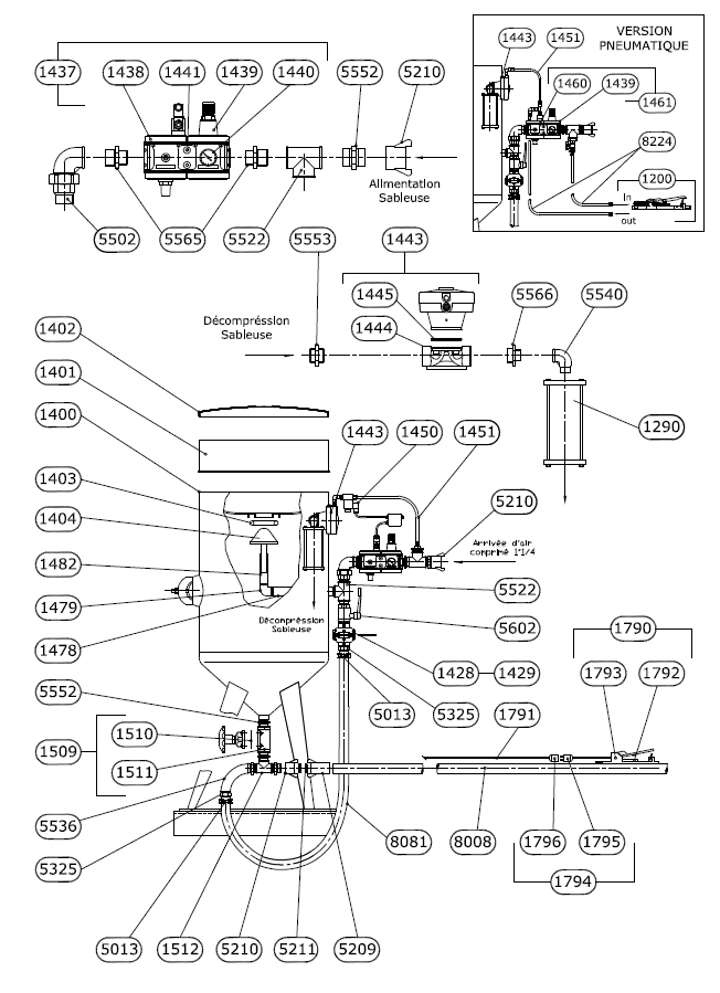Sableuse indus. 200 litres Commande pneumatique ATEX et régulateur d air
